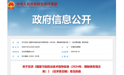 生態(tài)環(huán)境部發(fā)布2項國家生態(tài)環(huán)境標準征求意見稿2024-08-29 -